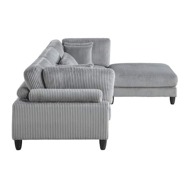 Laurelton 120 in. Pillow Top Arm 4-Piece Corduroy Fabric Modular Sectional Sofa with Ottoman in Gray