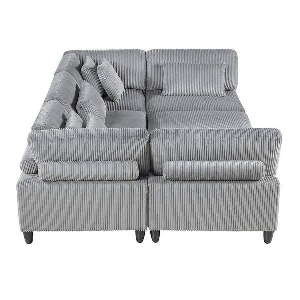 Laurelton 120 in. Pillow Top Arm 6-Piece Corduroy Fabric Modular Sectional Sofa with Ottoman in Gray