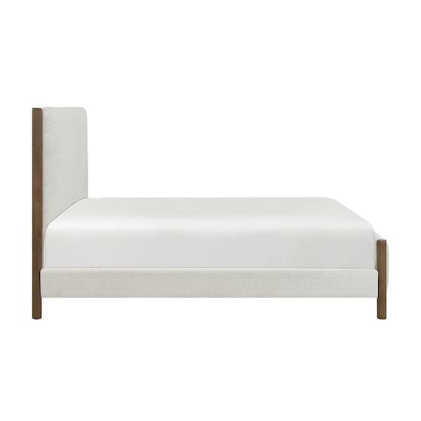 Logandale Beige Wood Frame California King Chenille Upholstered Platform Bed