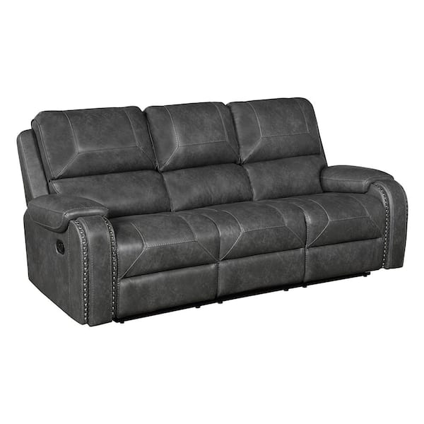 Logansport 87 in. W Pillow Top Arm Faux Leather Rectangle Manual Double Reclining Sofa in Gray