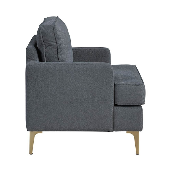 Lowe Dark Gray Chenille Upholstery Metal Leg in Brush Gold Finish Accent Arm Chair