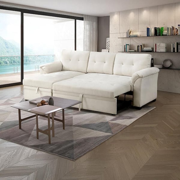 Monterey 86.5 in. Rolled Arm 2-Piece Textured Fabric Upholstery Reversible Sectional Sofa with Chaise in Beige