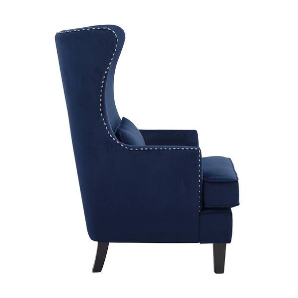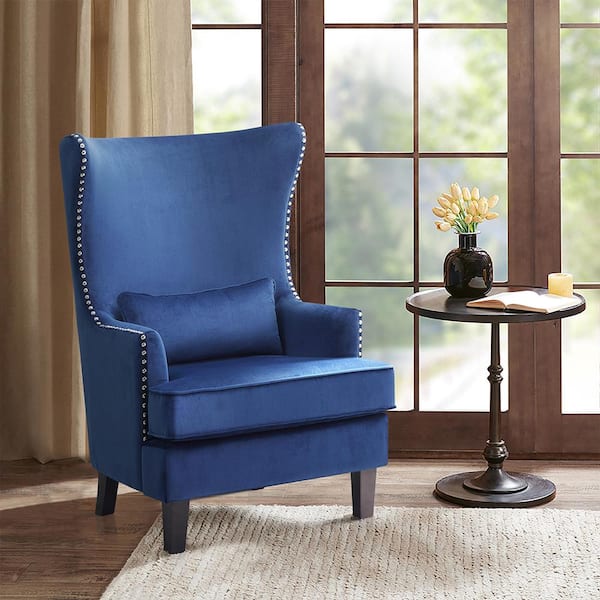 Narcine Blue Velvet Wingback Chair with Lumbar Pillow