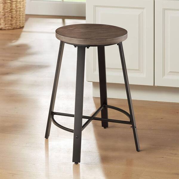 Nelina 24 in. Gray Metal Counter Height Stool with Burnished Brown Wood Seat (Set of 2)