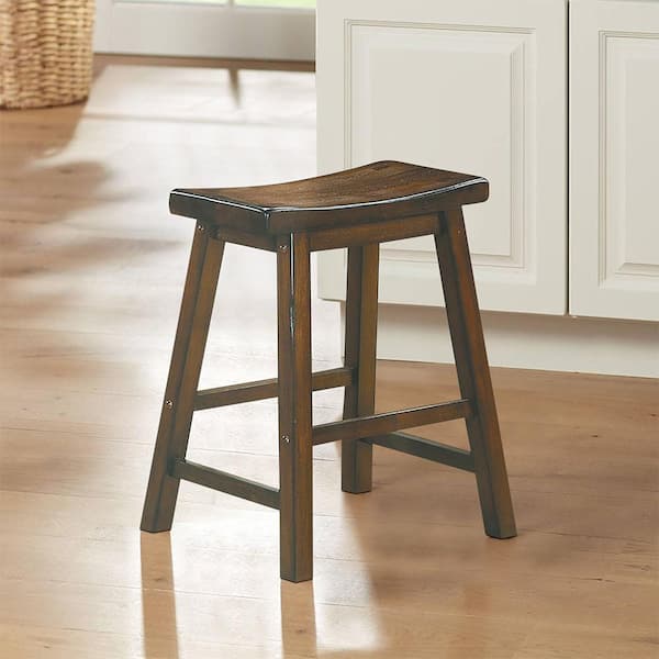 Nisky 17 in. Cherry Finish Solid Wood Dining Stool with Wood Seat (Set of 2)