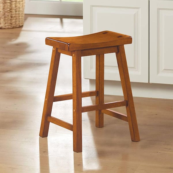 Nisky 23 in. Oak Finish Solid Wood Dining Stool with Wood Seat (Set of 2)