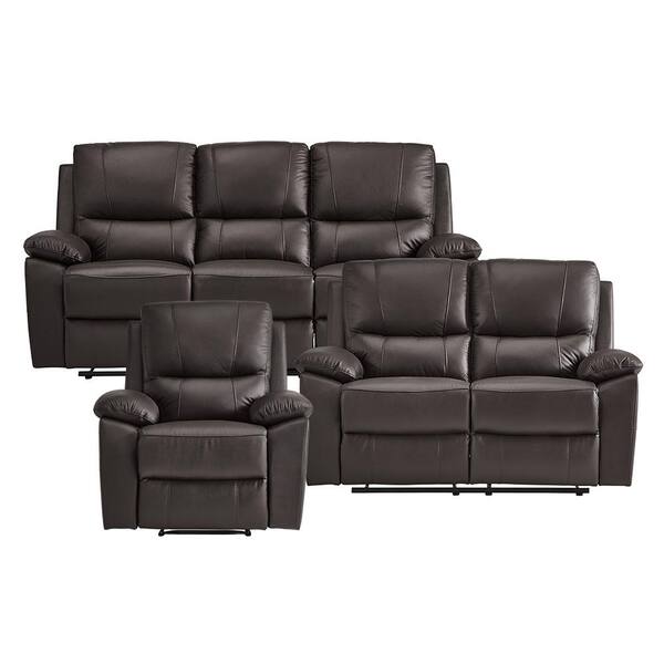 Orina 78 in. W Pillow Top Arm Faux Leather Rectangle 3-Piece Manual Reclining Sofa Set in Brown