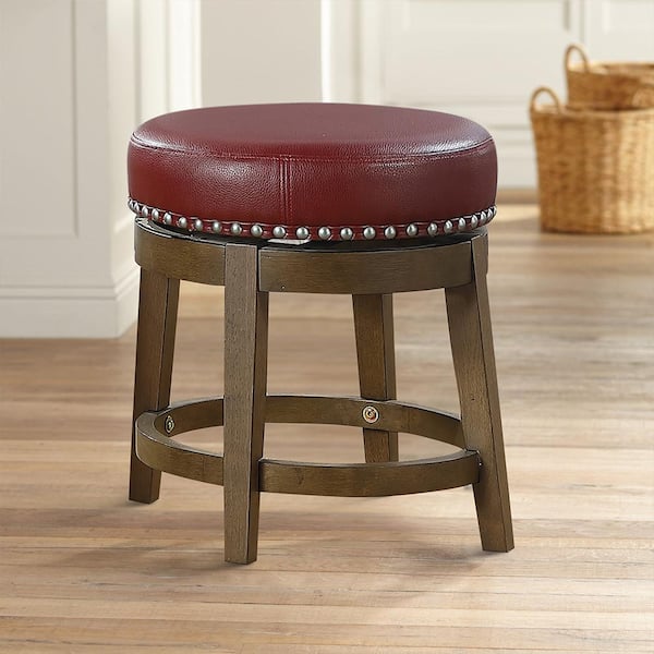 Paran 19 in. Brown Wood Round Swivel Stool with Red Faux Leather Seat (Set of 2)