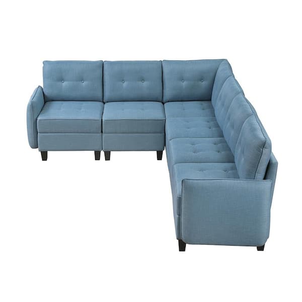 Swallowtail 112 in. Pillow Top Arm 6-Piece Fabric Sectional Sofa with Storage in Blue