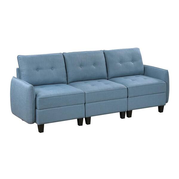 Swallowtail 86 in W Pillow Top Arm Textured Fabric Rectangle Sofa in. Blue