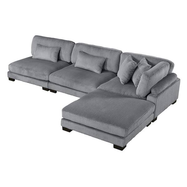 Turbo 135 in. Pillow Top Arm 4-Piece Corduroy Fabric Modular Sectional Sofa in Gray with Ottoman