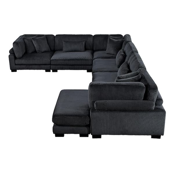 Turbo 135 in. Pillow Top Arm 6-Piece Corduroy Fabric Modular Sectional Sofa in. Black with Reversible Chaise