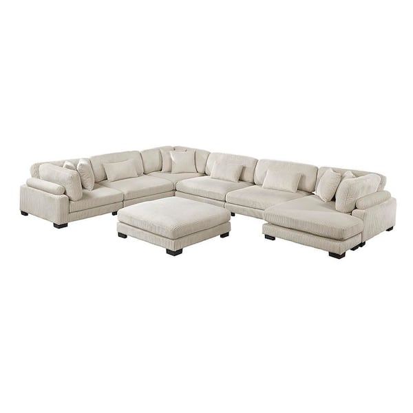 Turbo 135 in. Pillow Top Arm 7-Piece Corduroy Fabric Modular Sectional Sofa in Beige with Reversible Chaise and Ottoman