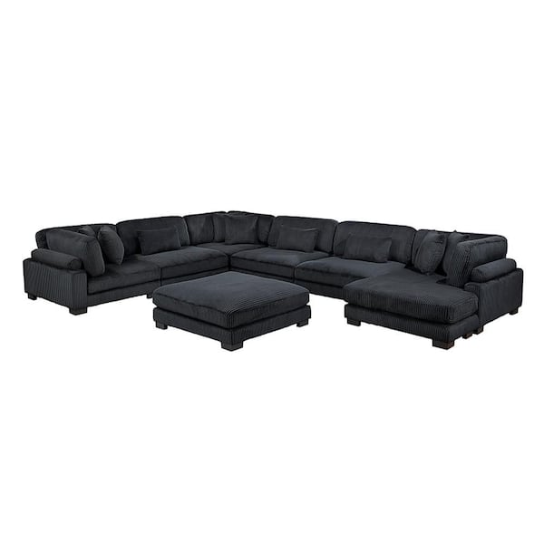 Turbo 135 in. Pillow Top Arm 7-Piece Corduroy Fabric Modular Sectional Sofa in. Black with Reversible Chaise and Ottoman
