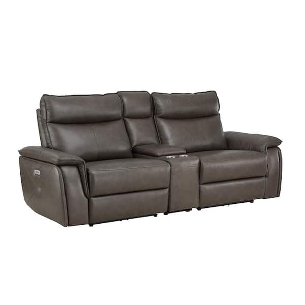 Verkin 93.5 in. W Dark Brown Leather Power Double Reclining 2-Seater Loveseat with Center Console and Power Headrests