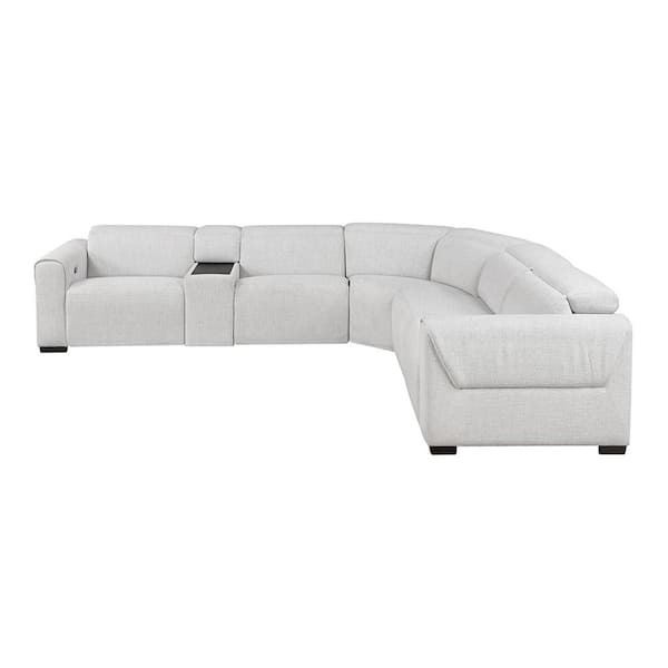 Violetta 123.5 in. Pillow Top Arm 6-Piece Chenille Modular Power Reclining Sectional Sofa in Cloud with Power Headrests