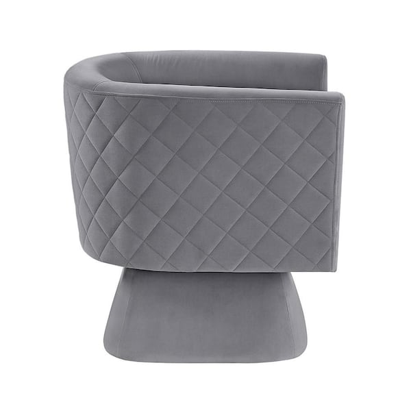 Waithe Gray Velvet Upholstery Swivel Arm Chair