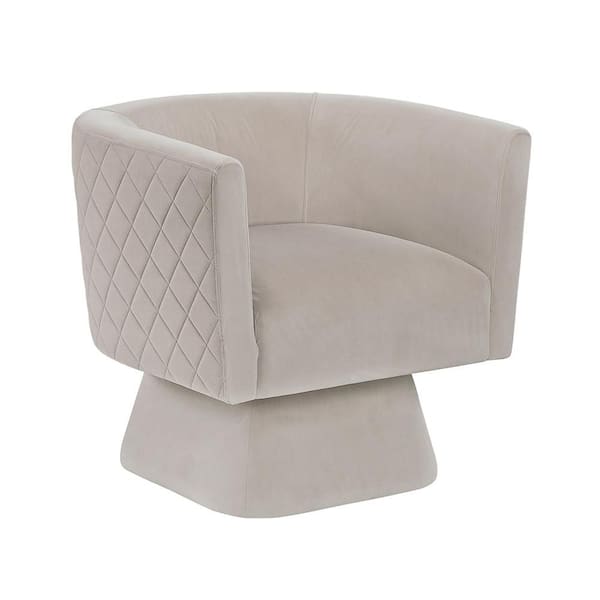 Waithe Taupe Velvet Upholstery Swivel Arm Chair