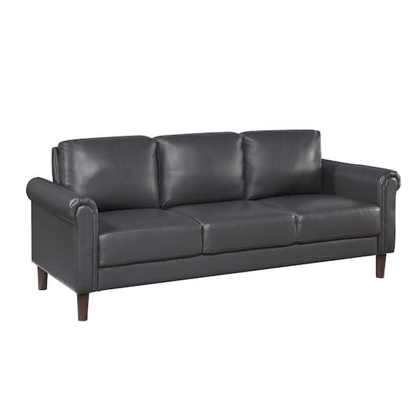 Walterboro 79 in. W Rolled Arm Faux Leather Rectangle Sofa in Dark Gray