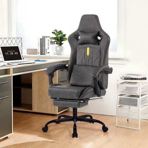 Leather Adjustable Height Gaming Chair Ergonomic Computer Chair with Lumbar Support in Grey with Linkage Armrests