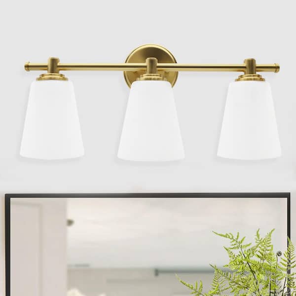 20 in. 3-Light Gold Classic Traditional Bathroom Vanity Light Fixture with Opal Frosted Glass Shade