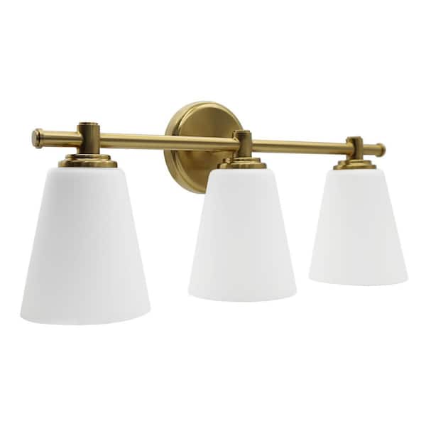 20 in. 3-Light Gold Vanity Light with Frosted Glass Shade
