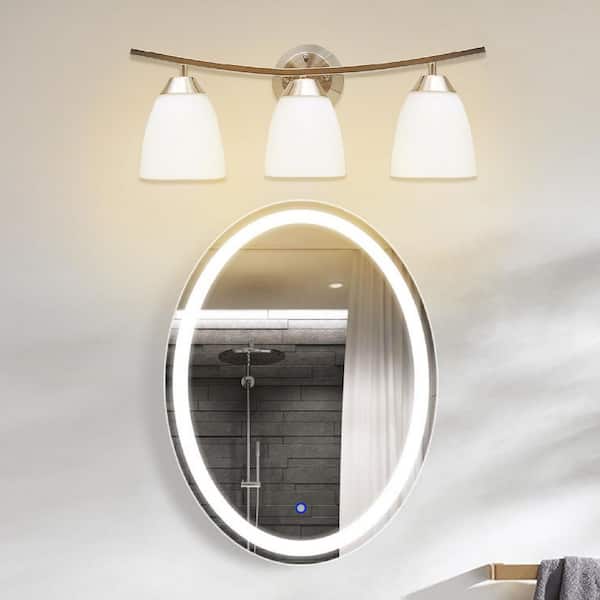 22 in. 3-Light Classic Brushed Nickel Vanity Light with Matching 4-Piece Bathroom Hardware Accessory Kit