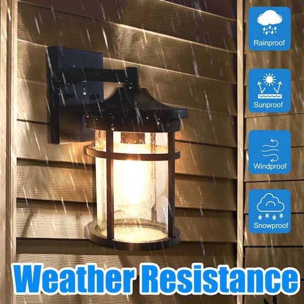Black 1-Light Outdoor LED Wall Lantern Sconce with Crackle Glass