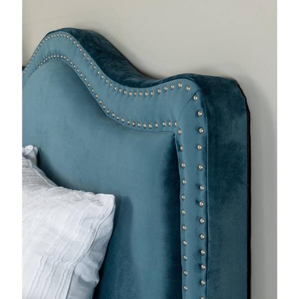Vivian Queen Upholstered Bed with Side Rails and Footboard in Chantel Teal