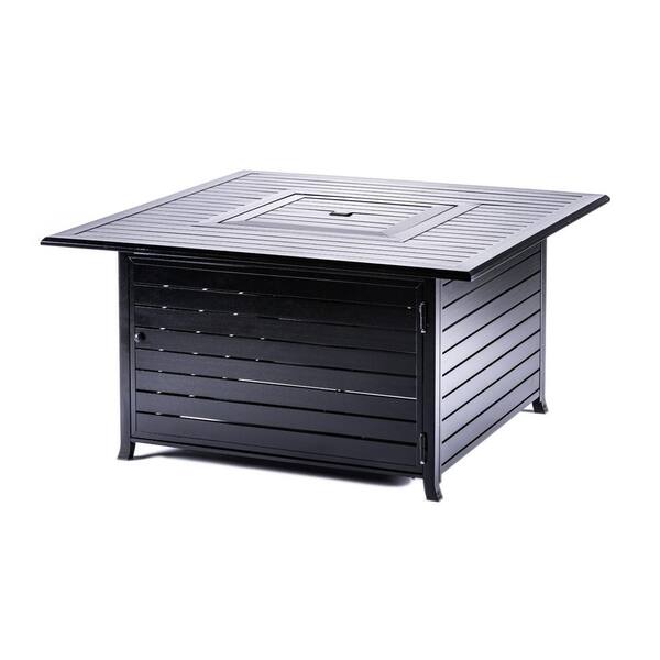 44.88 in. x 24 in. 50,000 BTU Square Aluminum Propane Fire Pit in Hammered Black with Table Lid and Cover