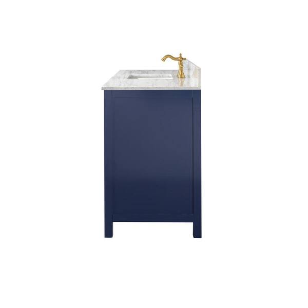 60 in. W x 22 in. D Vanity in Blue with Marble Vanity Top in White with White Basin with Backsplash