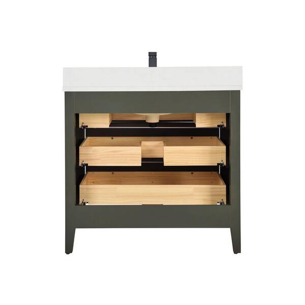 French Contemporary 36in. 1 Freestanding Pewter Green Bath Vanity with White Artificial Stone Top Assembled Bath Vanity