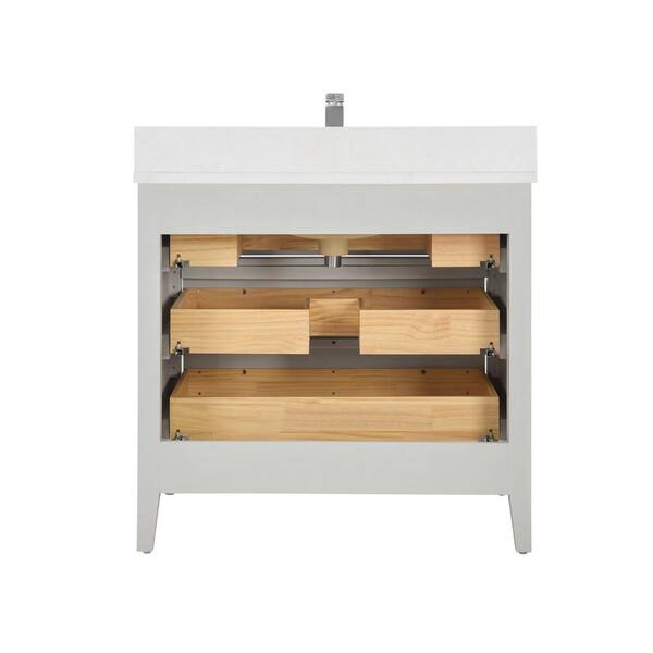 French Contemporary 36in. 1 Freestanding Silver Strand Bath Vanity with White Artificial Stone Top Assembled Bath Vanity