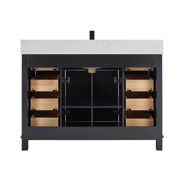 French Contemporary 48 in. 1 Freestanding Tricorn Black Bath Vanity w/ White Artificial Stone Top Assembled Bath Vanity