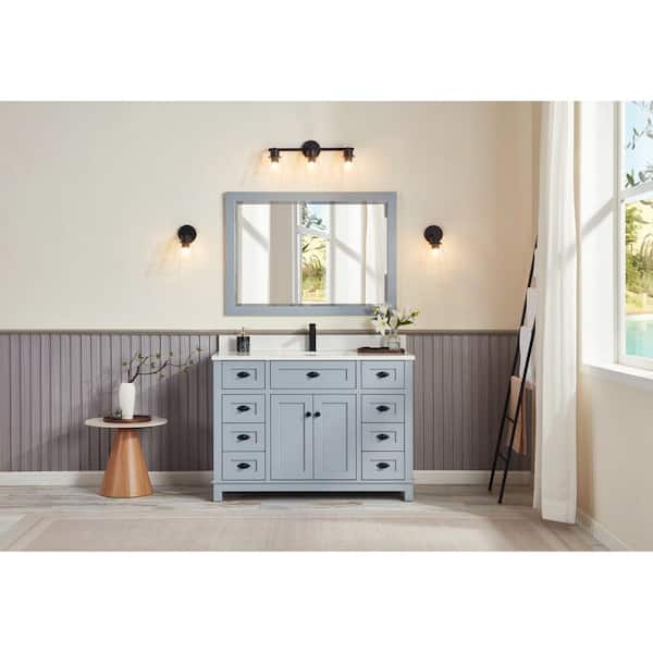 French Contemporary Series 48 in. 1 Freestanding Cadet Bath Vanity w/ White Artificial Stone Top Assembled Bath Vanity