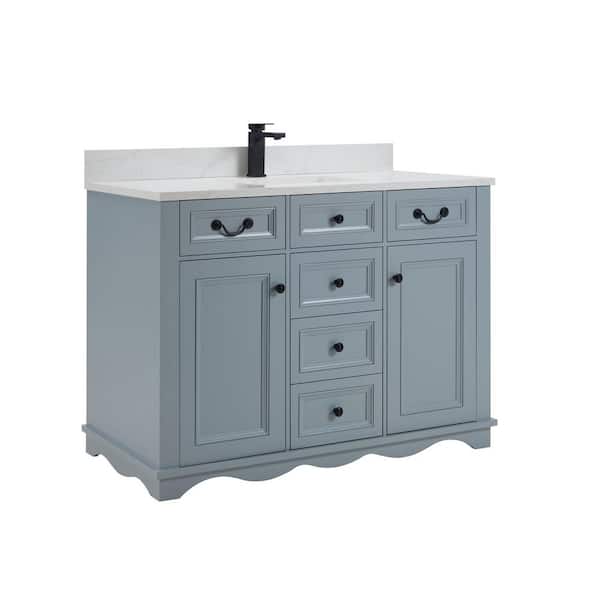 French Contemporary Series 48 in. 1 Freestanding Cadet Bath Vanity with White Artificial Stone Top Assembled Bath vanity