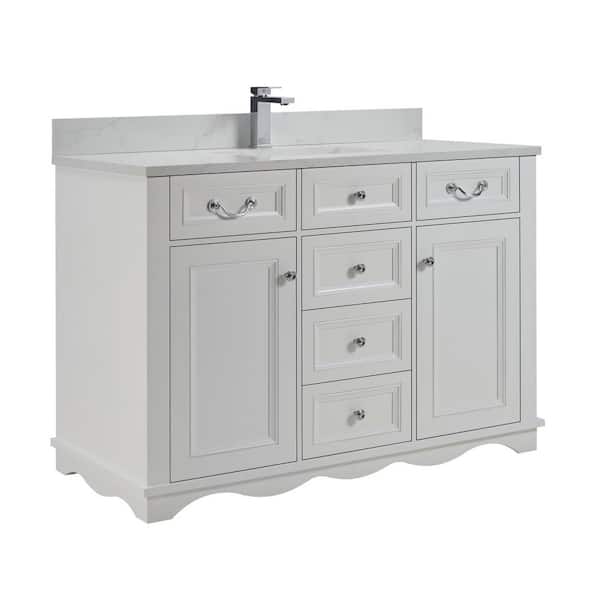 French Contemporary Series 48 in. Freestanding White Bath Vanity with White Artificial Stone Top Assembled Bath Vanity
