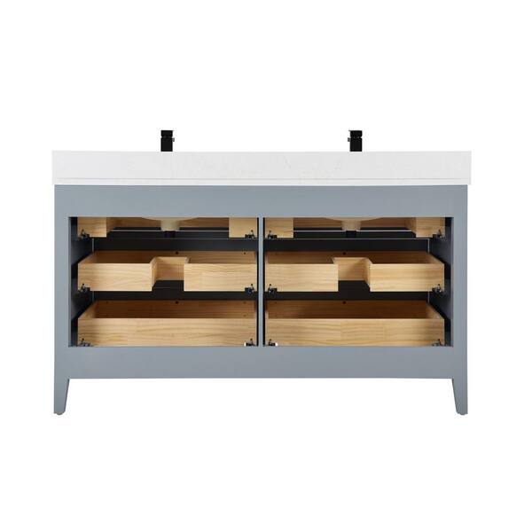 French Contemporary Series 60 in. 1 Freestanding Cadet Bath Vanity with White Artificial Stone Top Assembled Bath Vanity