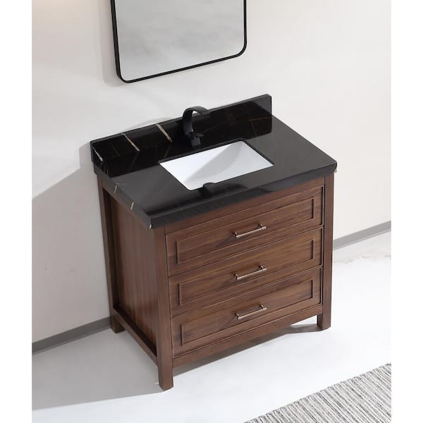 Luxury Ebony Series 36 in. 1 Freestanding Dark Brown Finish Bath Vanity with 2 in. Black Natural Marble Top Assembled