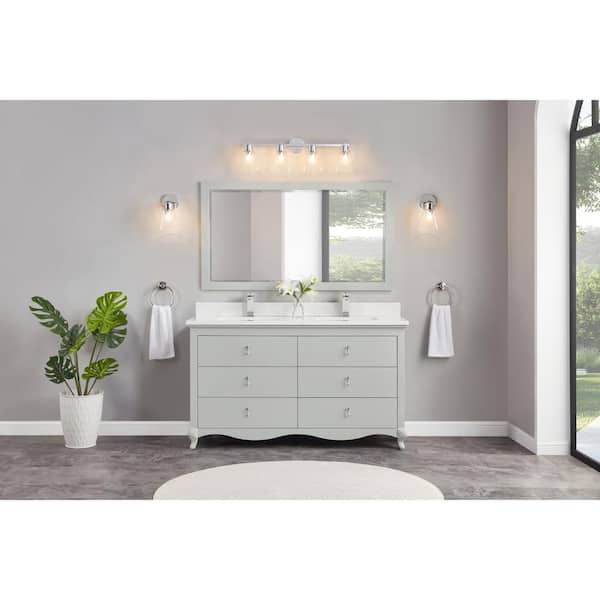Solid Contemporary 56 in. W x 31.5 in. H Rectangle Framed Standard Wall Bathroom Vanity Mirror in Silver Strand