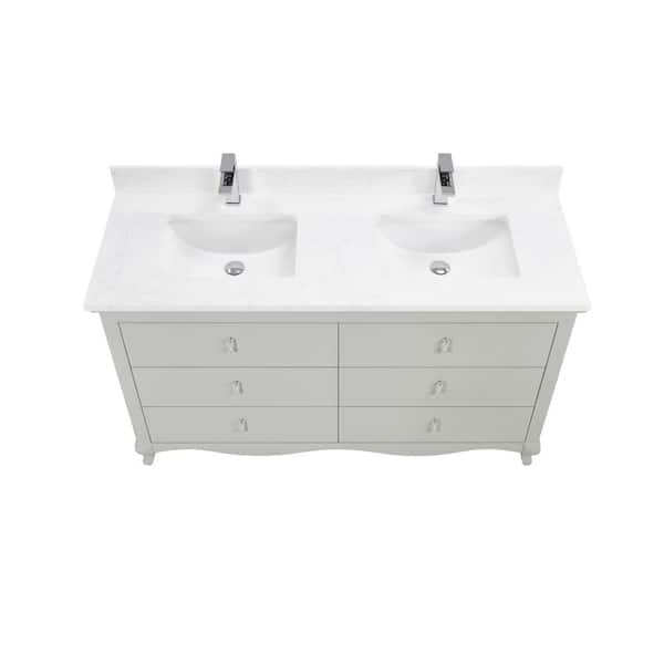 Solid Wood Contemporary 60 in. Freestanding Silver Strand Bath Vanity with White Artificial Stone Top Assembled
