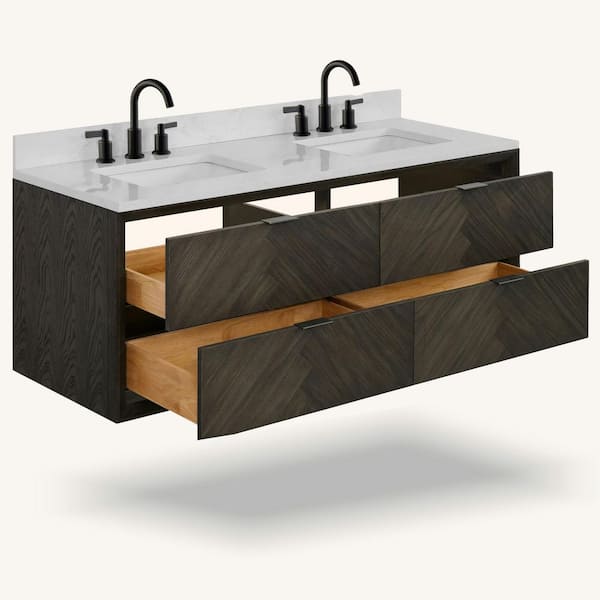 WH2660-BO 60 in Double Sink Sink Vanity Brown Oak Finish Bath Vanity with White 1 in. Artificial Stone Top
