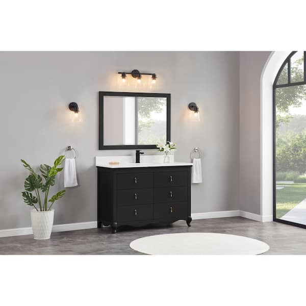 WS2512-48-TB 48 in Single Sink Sink Vanity Tricorn Black Bath Vanity with White 1 in. Artificial Stone Top