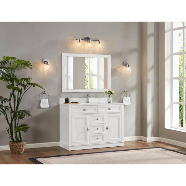 WS2516-48-W 48 in. Single Sink Sink Vanity White Bath Vanity with White 1 in. Artificial Stone Top