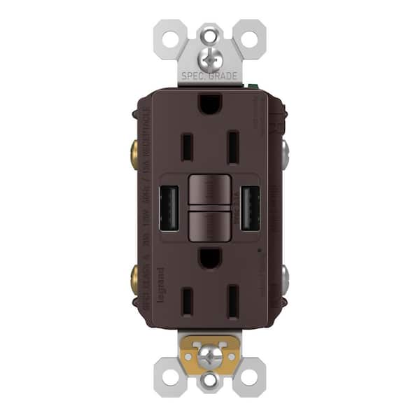 radiant 15 Amp 125-Volt Tamper Resistant Self-Test GFCI Duplex Outlet with Type A/A USB, Dark Bronze