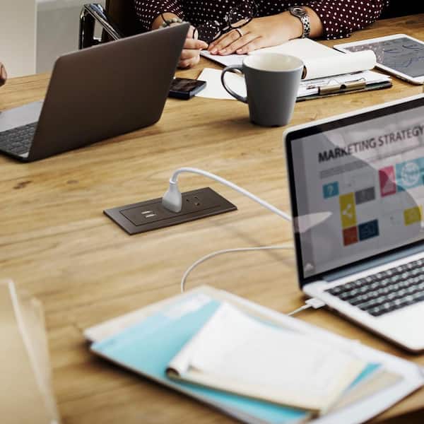 radiant 15 Amp Black 2-Outlet and 2 Type A USB Recessed Furniture Power Strip with 10 Ft. Cord