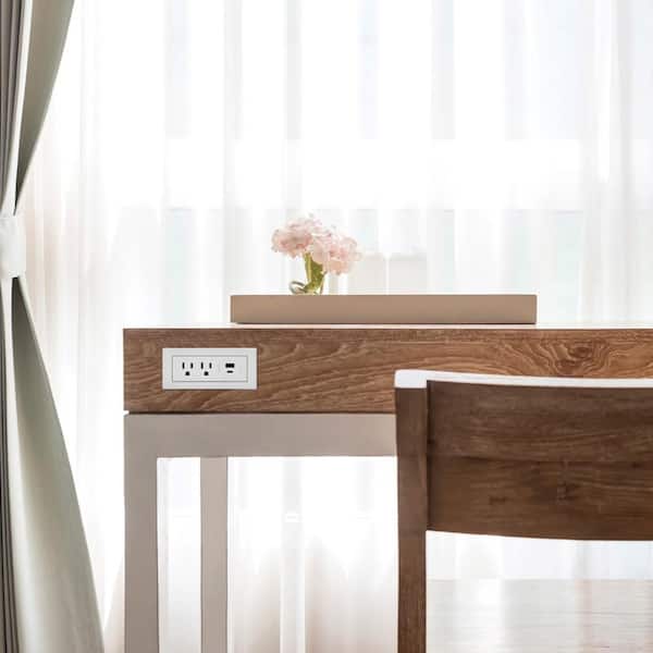 radiant 15 Amp White 2-Outlet and 2 Type A/C USB Recessed Furniture Power Strip with 6 Ft. Cord