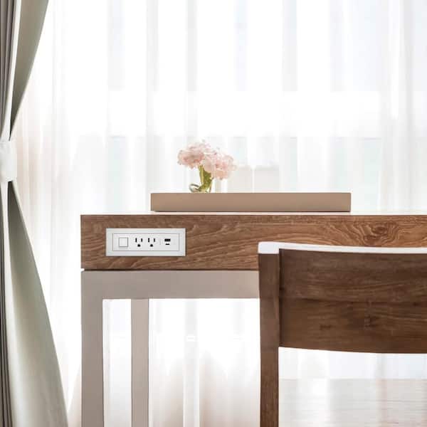 radiant 15 Amp White 2-Outlet and 2 Type A/C USB Recessed Furniture Power Strip with Switch and 6 Ft. Cord