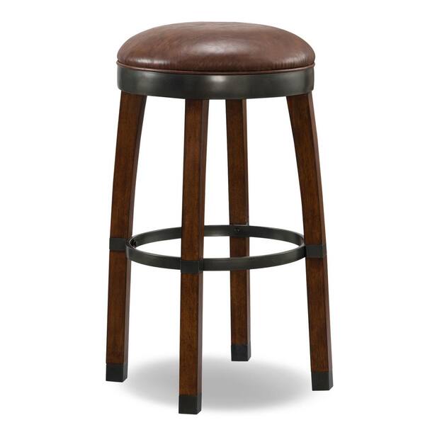 30 in. H Favorite Finds Sienna Wood Cask Stave Bar Height Stool with Sable Faux Leather Seat (Set of 2)