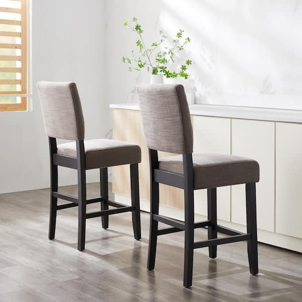 40 in. H Favorite Finds Black and Gray Wood Back Linen Upholstered Seat Counter Height Stool (Set of 2)